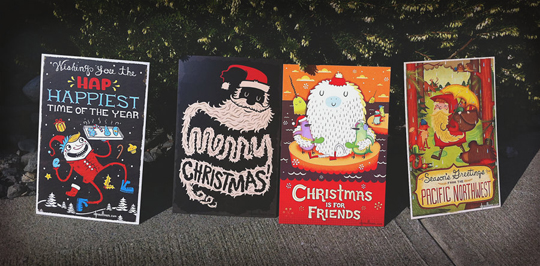 -I pretty much started developing my style from a very early age. When I was in first grade I would draw Mickey Mouse and Donald Duck for my classmates, and then a couple years later it was characters from the Simpsons. After high school I moved up to Seattle to go to the Art Institute to get a degree in animation. I then went up even farther north to Western Washington University and got a degree in graphic design, which is where I started to be more graphical with my approach and incorporate typography into my work. So now my day job is as a freelance graphic designer and illustrator.